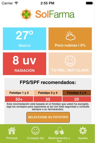 SOLFARMA es una aplicación propiedad del Consejo General de Colegios Oficiales de Farmacéuticos (CGCOF) dirigida al público general sobre protección solar, con el objetivo de ayudar al usuario a su correcta fotoprotección, evitando los riesgos de una exposición solar prolongada o inadecuada.