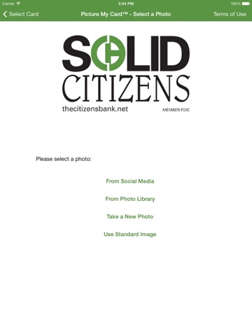 Personalize your card from your iPhone, iPod, and iPad using Photo from The Citizens Bank.