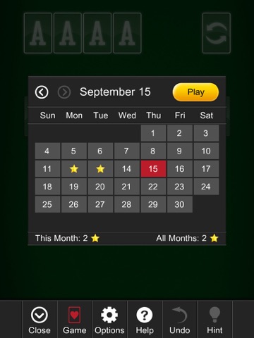 • Many options, including Draw 1, Draw 3, undo and hint.