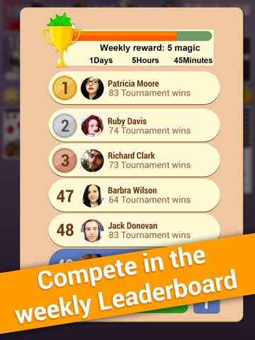 This is a fun version of solitaire. Sometimes I question when I get knocked out of a tournament though because the scores get too high too fast. I think it is a programming thing designed to entice you to purchase credits