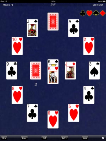 Clock Solitaire is a simple solitaire card game where the player has to arranged 12 piles to resemble the face of a clock, with the 13th pile (Kings) in the centre of the clock.