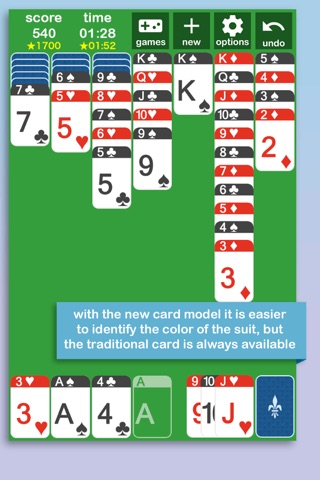 The classic solitaire (or Klondice), is the most traditional solitaire game. A tableau of seven columns of cards is arranged on the table with the top card face up; the remaining cards forming a draw pile. The goal is to move all 52 cards in the deck into four suit-specific foundation stacks.
