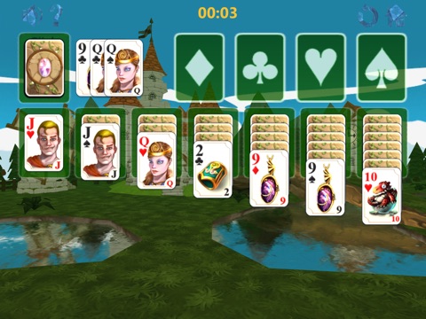 The royal family is in chaos and only you can sort things out! Solitaire Royale is a solitaire-based card game played with a standard 52-card deck. Move the cards to the foundation in the upper right by moving them in order from Ace through King by suit to get the royal house running smoothly again. Enjoy playing classic Klondike solitaire today with a wonderful castle background and beautifully designed playing cards.