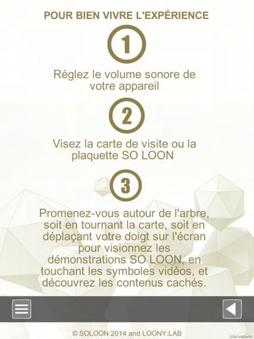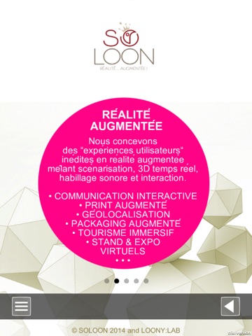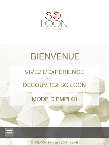 Bienvenue dans l’application So Loon qui vous permet de découvrir notre activité d’agence créative de réalité augmentée, réalité virtuelle et design interactif.