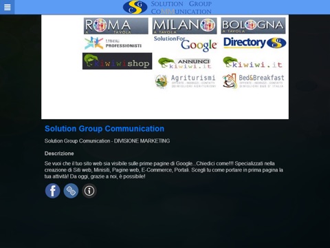 Entrare in Solution Group dalla porta principale grazie a questa APP per essere sempre informati sul mondo del WEB. Offerte, promozioni, implementazioni e assistenza in con un semplice tap. Essere primi in prima pagina su GOOGLE non è un sogno, ma realtà!