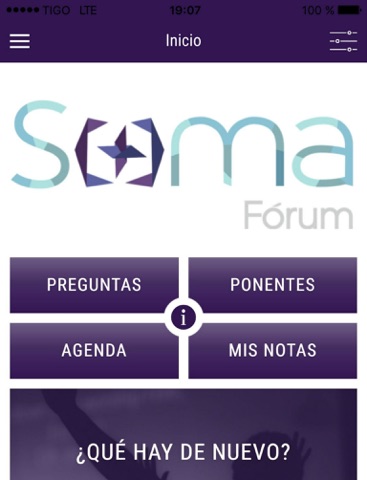 “SOMA Fórum” es un modelo de app disponible para que pueda descubrir las principales características de ÁGORA y explorar todas sus posibilidades como: preguntas en vivo, perfil de conferencistas, agenda y twitter feed.