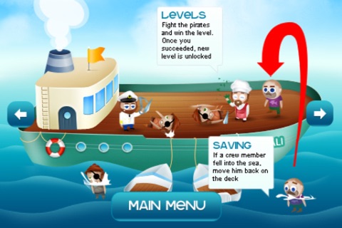 Sailing at sea might be dangerous, as crowds of pirates attack vessels. Repel an attack by arming the crew, hitting pirates and throwing objects at them. You can move members of the crew across the deck, save them from water and put back on the ship. Make sure that at least one member of the crew is standing on a deck; otherwise pirates will steal the ship.