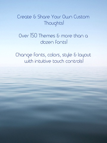 Easily share any of the Thoughts built in or create your own thoughts, using over 180 Themes and 15 fonts.