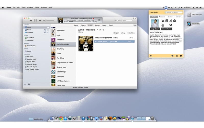 Song Buddy automatically detects the artist youre currently listening to and allows you to look up their profile, find upcoming events, similar artists and much more.