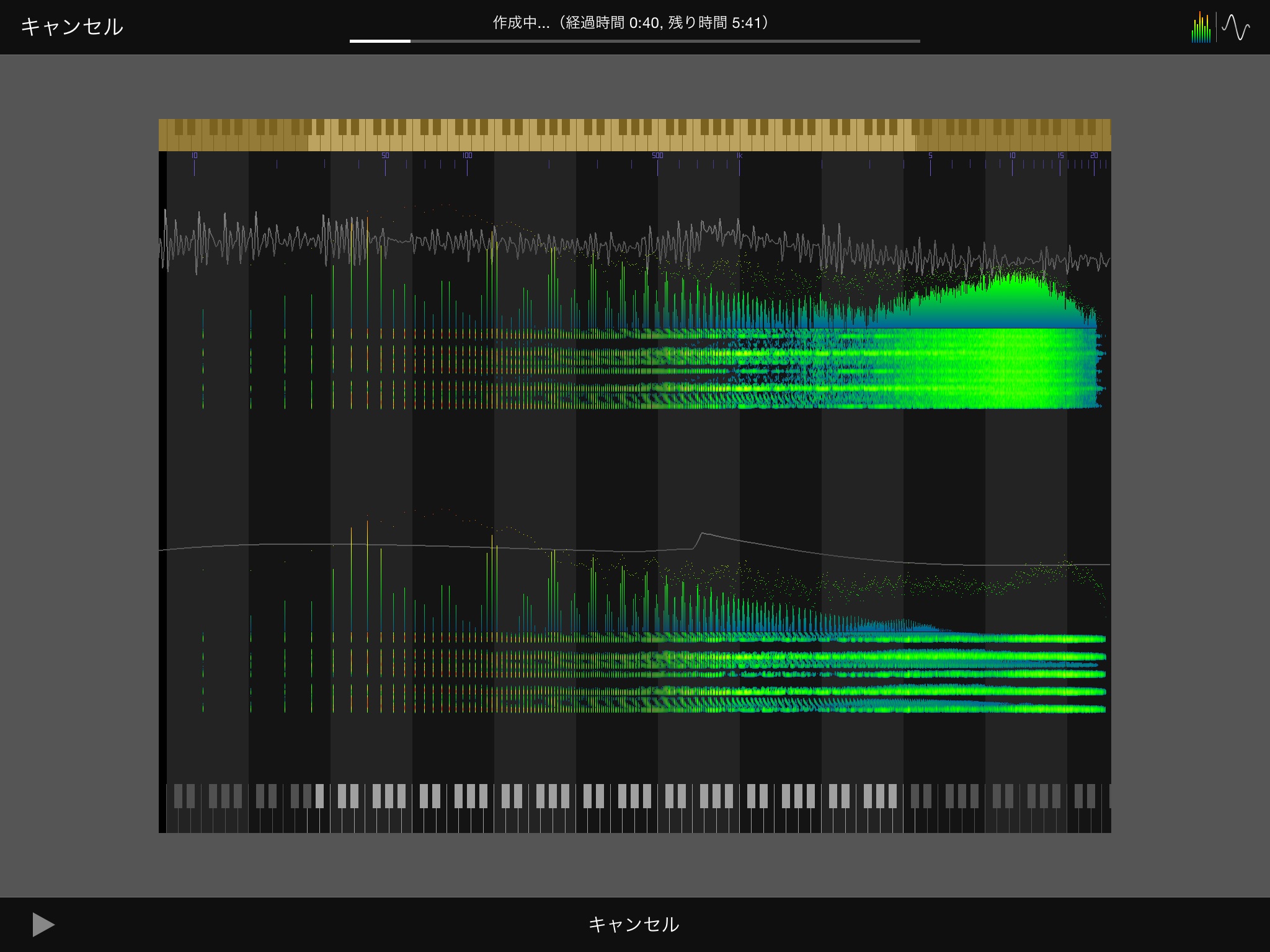 - Spectrum is displayed relative to an equally-tempered musical frequency scale.