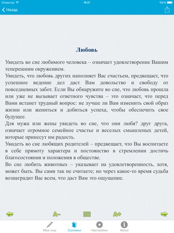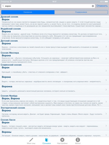 Самый крупный сонник AppStore - собрано 43 различных сонников, около 30 000 толкований.