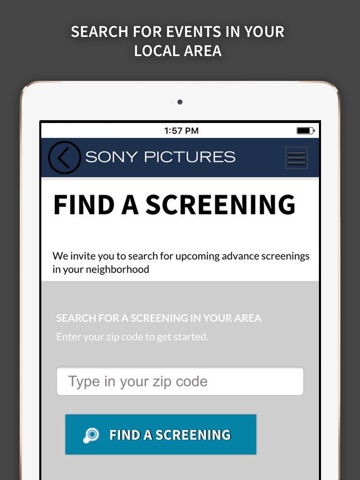 Get started today! To find exclusive Sony Pictures advance screenings in your neighborhood. Its quick and easy. The Sony Screenings App also allows you to:
