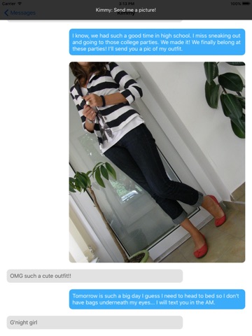 Ever wanted to know what it was like to be a college girl in a Sorority? With Sorority Sister you can go out with all of the hottest guys and youre invited to the most exclusive parties. Text your college friends, get real photos of the characters and get to know their personalities. Fill in the blank to advance to the next chapter. There is always more to discover in the thrilling world of college life.