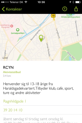 Appíen indeholder også en masse kontakter, du kan få brug for i dit arbejde, med adresse, tlf.nr, e-mail etc. Du kan ringe eller skrive direkte fra kontaktsiden, eller du kan dele kontakten med dem du har brug for via delingsfunktionen