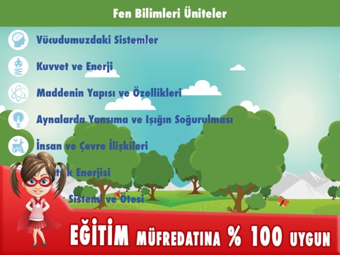 SORUMATİK, 7. sınıf öğrencileri için Milli Eğitim Bakanlığının Yeni Müfredatına %100 uygun, yepyeni Fen Bilimleri uygulamasıdır ve müfredat kazanımlarına göre hazırlanmıştır.