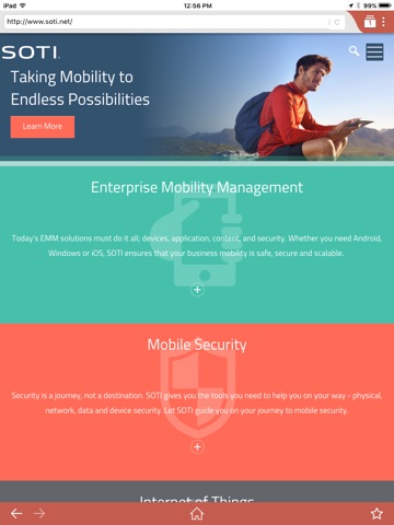 SOTI Surf is a secure mobile browser that allows you to access your organization’s web content on your iPhone or iPad. It enables secure browsing and provides an organization with the ability to configure customized settings to meet unique business and end-user needs. By allowing organizations to define and enforce secure browsing policies, SOTI Surf provides the benefits of mobile browsing without common place security risks.