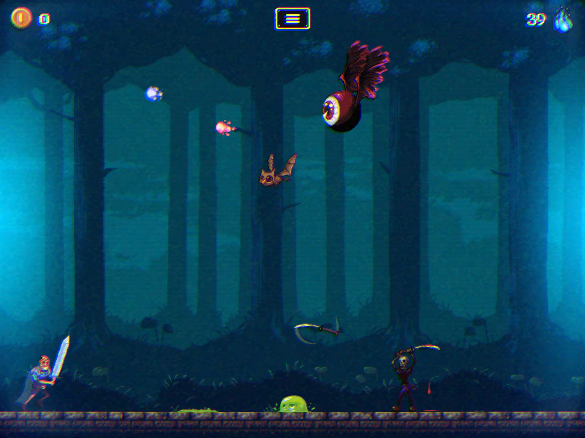 Soul Quest is a challenging retro styled endless hack n slash runner taking place in a world full of monsters and traps. Defeat a slew of giant bosses and unlock pets with fantastical power-ups who will aid you on your journey against increasingly harder enemies and boss fights.