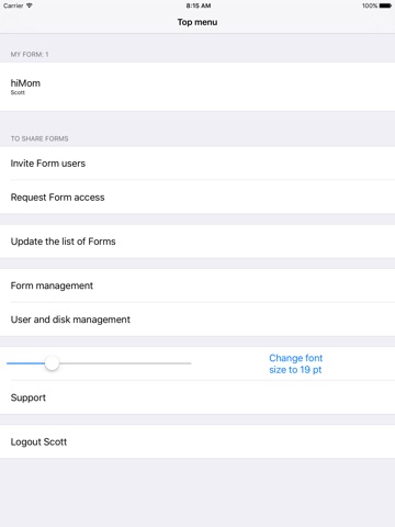 Scotts mother lives alone and Scott is always worrying about his mother because he is too busy to speak with her. His mother can not use email because it is too complicated. He downloaded this App and created a Form with Audio Field. Now she can speak about anything that happened anytime she wants. She can communicate to her son by a few taps. Also Scotts sister, Amy, can use the Form to listen, speak and share music files to her mother and brother anytime convenient to her.