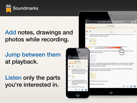 Soundmarks is the professional grade recorder for iOS that helps you focus on the most important sections of your recordings. The start of each section is marked with a soundmark. In a nutshell, a soundmark is to a recording what a bookmark is to a book. At playback, you can jump between these soundmarks with only one tap, making it easy to listen only the things youre interested in.