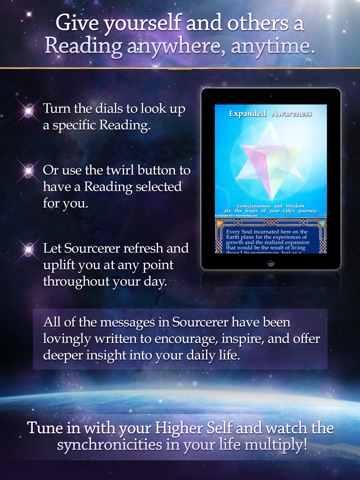 Sourcerer is accessible to anyone and everyone. The pleasing graphics and music are a welcome break at any point you desire insight or inspiration. These messages are non-dogmatic, free of specific religious reference, and allow their spiritual wisdom to be accessible to all. Anyone who uses Angel Cards, Tarot, or other methods of divination will find Sourcerer a unique and valuable addition to their collection of inspirational reading.