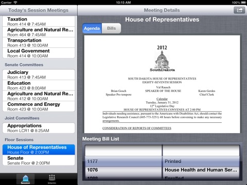 Follow along with South Dakota legislature session and interim committee meetings and have quick access to the agenda as well as any bills or committee documents.