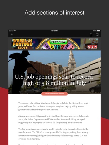• Turn your device sideways for an entirely different visual view of the news (iPad only)