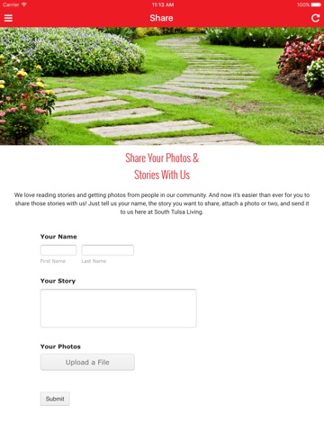 - Share your own stories and photos with South Tulsa Living conveniently through the app.