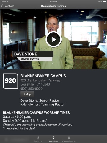 - Look up location, service times, and contact information for all campuses.