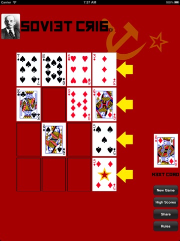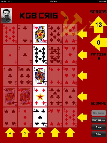 Play against famous fathers of the revolution like Lenin, Stalin and Trotsky. With in-app purchase play KGB Cribbage - a game on a 5x5 grid with no cut card (more strategy, less luck). Also challenge other comrades with Pass & Play.