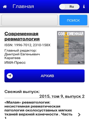 Научно-практический рецензируемый медицинский журнал «Современная ревматология» издается с 2007 г.