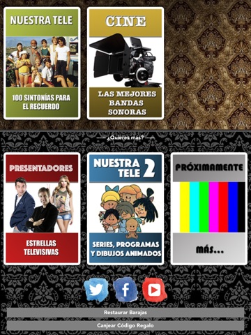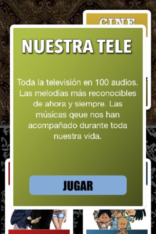 El juego se divide en barajas temáticas con 100 audios en cada una de ellas. El número de barajas disponibles se irá incrementando con el tiempo para que cada uno elija la que más le guste o la que más conozca.