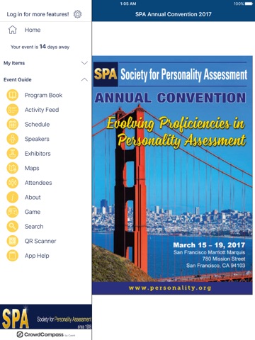 This is the convention app for the SPA annual convention, 2017. The SPA (Society for Personality Assessment) is excited to offer an event app for the convenience of its attendees. Please utilize this app as a quick reference to convention information and a shortcut to your personal schedule (must be created manually).