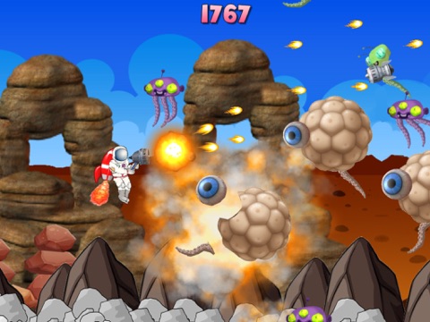 An astronaut flies with a jetpack on planet Mars and fight aliens in this endless space adventure. Fly as far as you can to get high score.