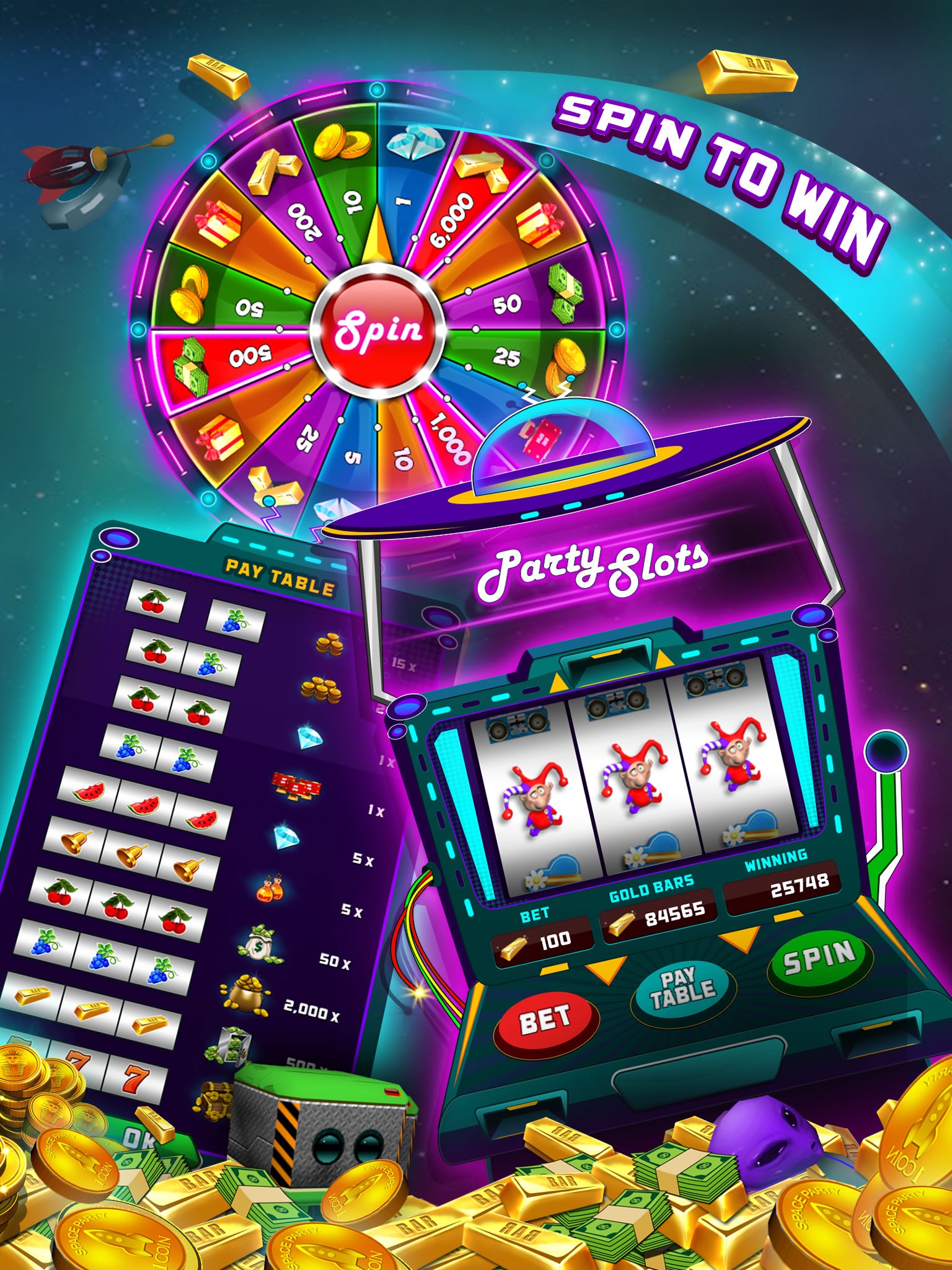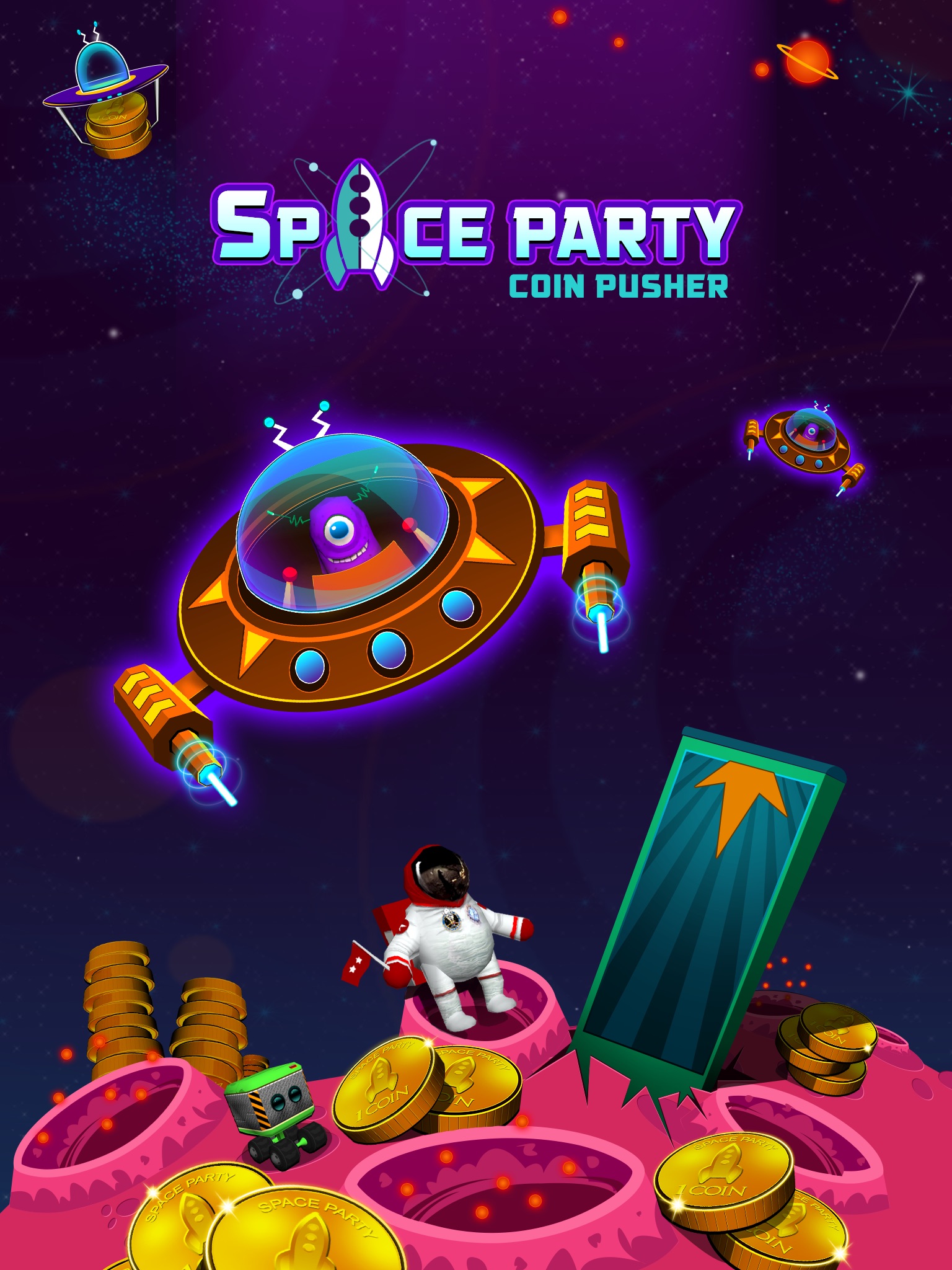 Space Party offers the most exciting, fast-paced, action oriented coin experience in the universe! Fly through the galaxy while collecting rare prizes, completing quests, and cashing in on your coin stash! Take a break from your star travels and play our wheel of fortune and slot mini-games for amazing prizes and bonuses!