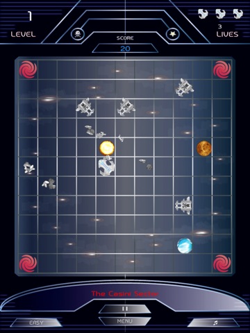 Do battle and outwit a bunch of crazy pirates as you battle your way through 60 levels of pirate mayhem. At your disposal is the Stingray Mk IV, a state of the art space ship equipped with side firing lasers. Each turn you take, decide if you want to shoot your lasers or move your ship to out maneuver the enemy pirates. Use ship debris, asteroids, and planets to your advantage since most enemy ships will blindly pursue you without regard for their own safety. A word of caution, watch out for the more advanced enemy ships since they will try to evade other ships while coming after you. The deadliest enemy will even try to shoot you to pieces and does not care who else gets in its crosshairs.