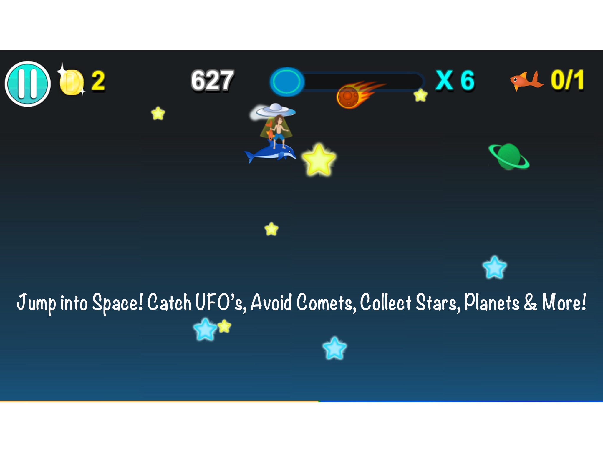 *Catch and ride on a UFO, collect planets and stars. Avoid the comets!