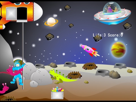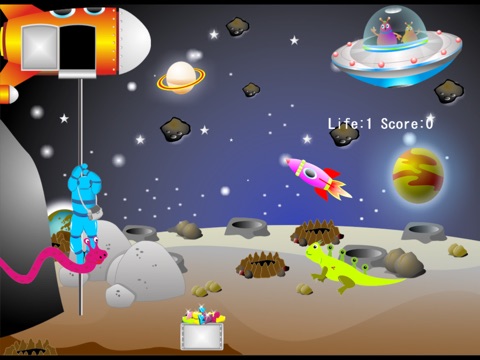 But be very careful because those weird outer space creatures are watching over you, to snap you! and a UFO comes to steal you treasures, do your best to guard them and collect as much as treasures as you can.