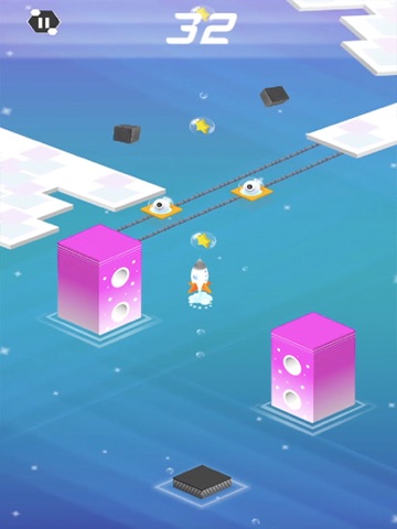 Jump into rockets and control the speed to avoid dangers.