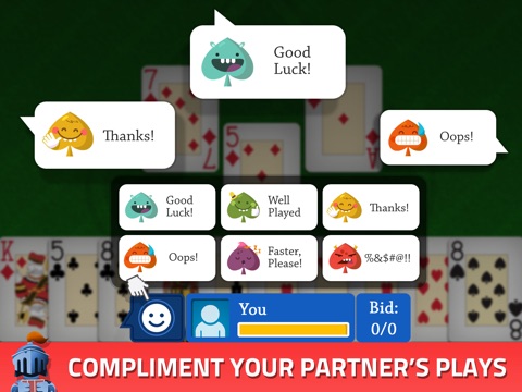 - Talk to your partner and your opponents during your game in Spades Chat.