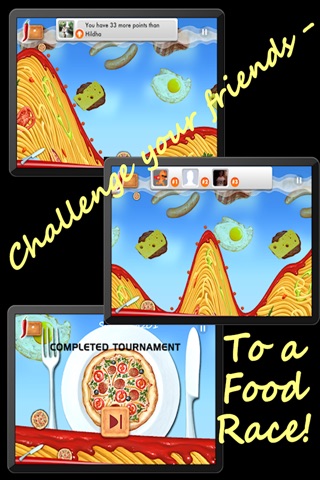NEW NEW NEW - Multiplayer! Race your food against your friends! Invite them to play via Facebook or email!