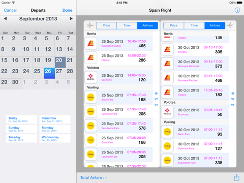 The real simplest DOMESTIC flight search application that you can compare price from major local airlines in Spain, quickly and easily from your iPhone/iPad. All available flights are provided in 3 categories; by price, departure time, and by airlines, to maximally facilitate your comparison.