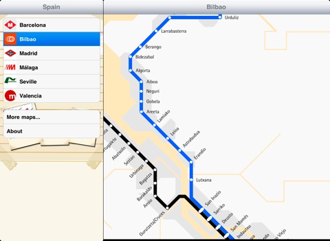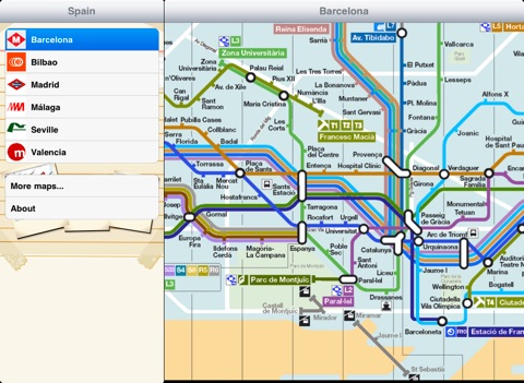 Simple and smooth maps of the Spain subway-metro/rail system with Retina & Full-screen display. All included maps work offline - save on roaming/internet charges.