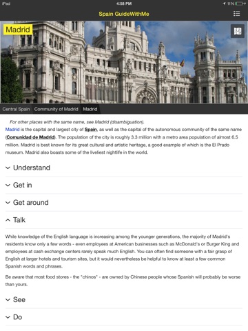 Spain GuideWithMe is an offline travel guide, which recommends detailed articles around the country in relation to your current location. Developed by travelers and for travelers, GuideWithMe is a rich source of general travel info as well as off the beaten track advice.