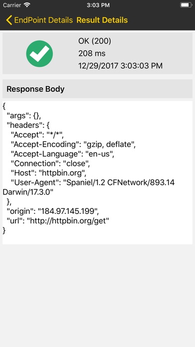 • Get up and running quickly! App comes pre-loaded with a project to test the HttpBin.org base URL and several of its endpoints as examples