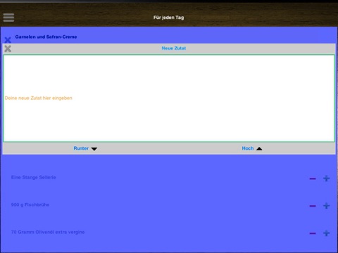 3. Erstellen Sie Einkaufslisten mit den Zutaten die Sie benötigen.