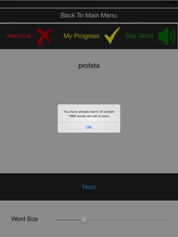 You can listen to the correct pronunciation of every word or phrase that the app offers. You will be able to remove the words that you have already learnt or knew, so they will not be displayed again, which will give you more time to work on the words which you have not quite learnt yet. You can always check how many words you have already learnt, how many are left, and test your knowledge to ensure that you are on the right learning track. At any time you will also be able to restore all words that you have removed. All of this will help you to learn the number of words, that is enough to speak a language well, very fast.