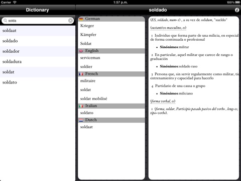If your looking for a Spanish Dictionary with the definitions in Spanish, skip this app. It is very limited and even though its only $1.99 its absolutely not worth it. iRae is a free app and sooooo much better--exactly what I was looking for: a Spanish Dictionary with several variations of the same word, verb conjugation, etymology, colloquialisms, synonyms, antonyms. This app will sit in my phone and probably will never be used.