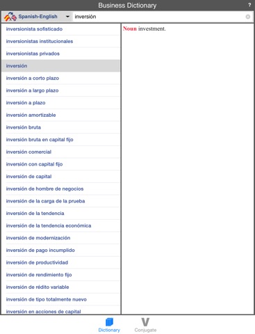 Translate more than 18,000 business and economy terms from Spanish to English and from English to Spanish. Conjugate verbs in several languages. Avoid to pay Internet connection fees with this 100% offline dictionary.