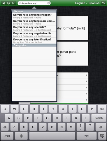 Ive just added this phrasebook to the French-English one by the same company. I love this series -- they have hundreds and hundreds of phrases with high quality recordings. I dont think theres a better phrasebook out there. Note that the dictionary tab is only activated if you get the phrasebook and dictionary bundle.