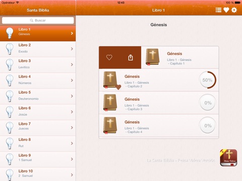 Esta aplicación te da la posibilidad de leer todos los libros del Antiguo Testamento y el Nuevo Testamento en su Iphone / Ipad / Ipod Touch.